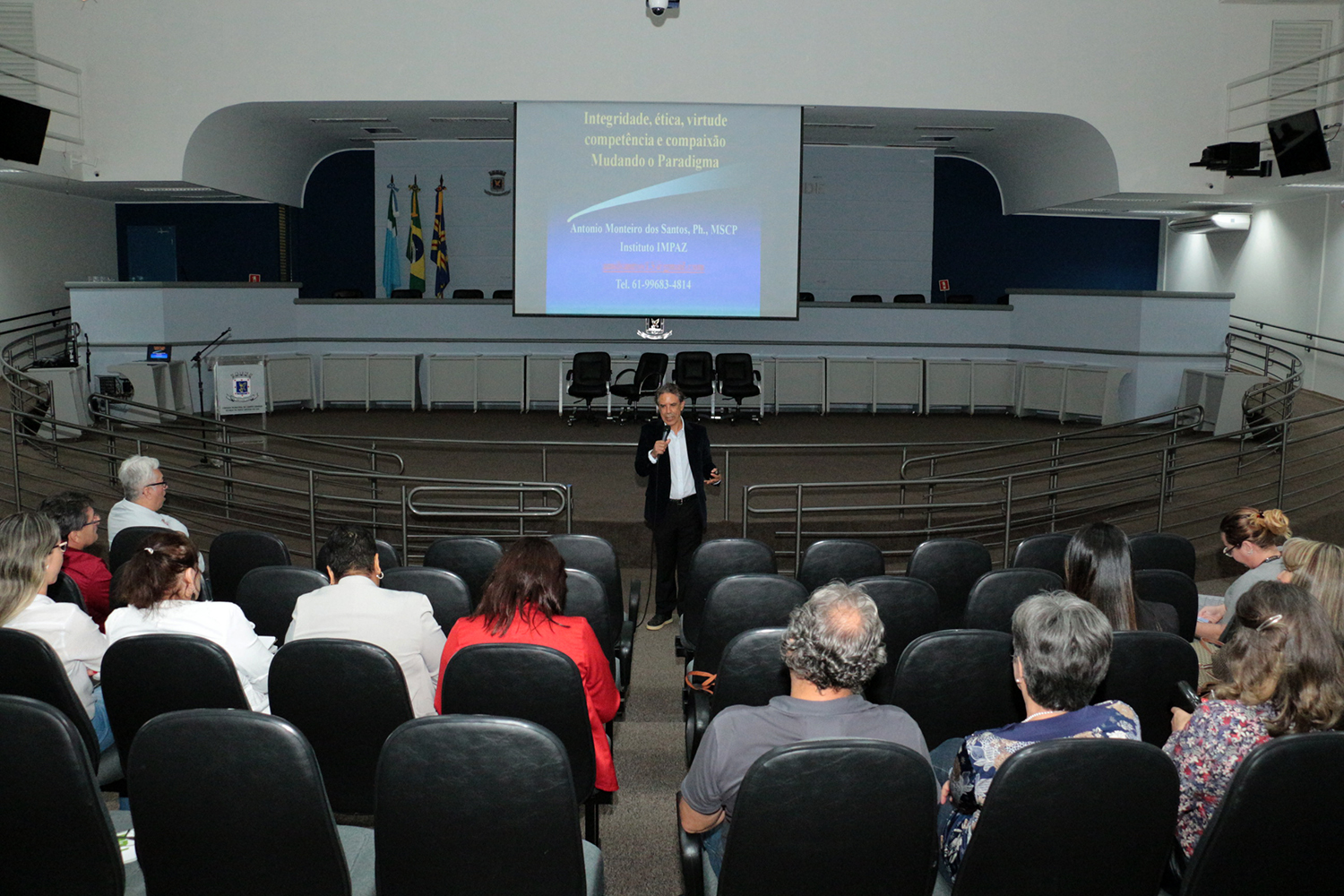 Com foco na conscientização política da sociedade, a Câmara Municipal de Campo Grande promoveu, na noite desta terça-feira (03), o seminário “O Despertar de uma Nova Política no Brasil”, ministrado pelo psicólogo Antonio Monteiro dos Santos. Durante o evento, que contou com apoio da Escola do Legislativo, ainda aconteceu o lançamento do livro “O Presidente que Queremos – O Despertar de uma Nova Política”, de autoria do palestrante.