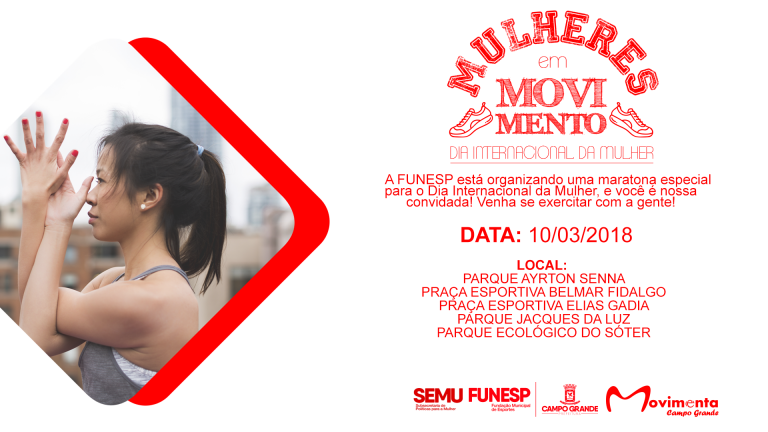 Para comemorar o Dia Internacional da Mulher, a Prefeitura de Campo Grande, por meio da Fundação Municipal de Esportes (Funesp), realiza neste sábado (10), de forma simultânea, diversas oficinas de esporte e lazer, em 5 parques da Capital.