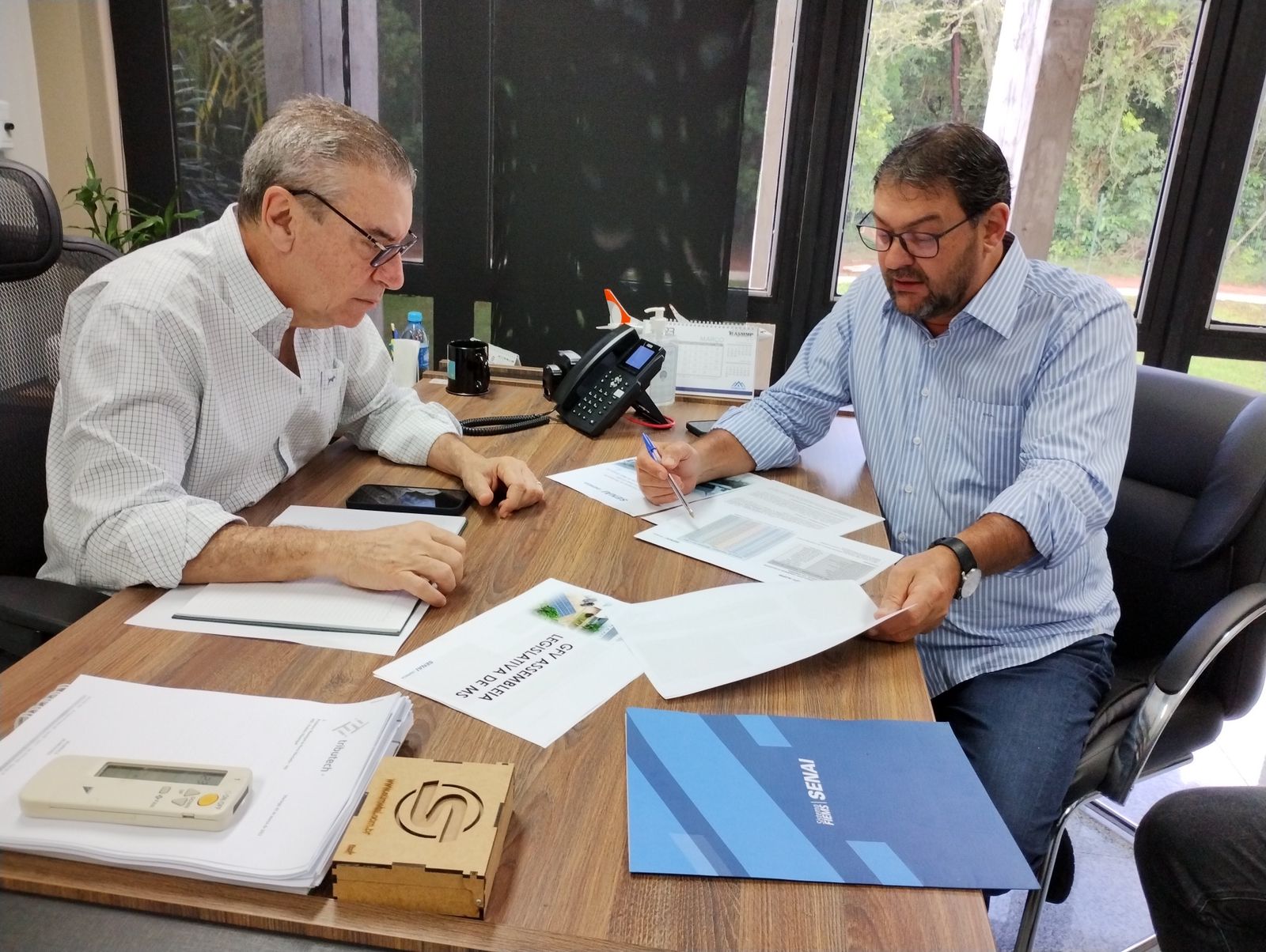 Em reunião na última quarta-feira (15), Paulo Corrêa e o empresário Sérgio Longen, presidente da Fiems, discutiram detalhes do projeto, que consiste aplicação de ESG (Enviromental, Social and Governance) – conceito que envolve melhores práticas ambientais, sociais e de governança – no dia a dia do Parlamento.