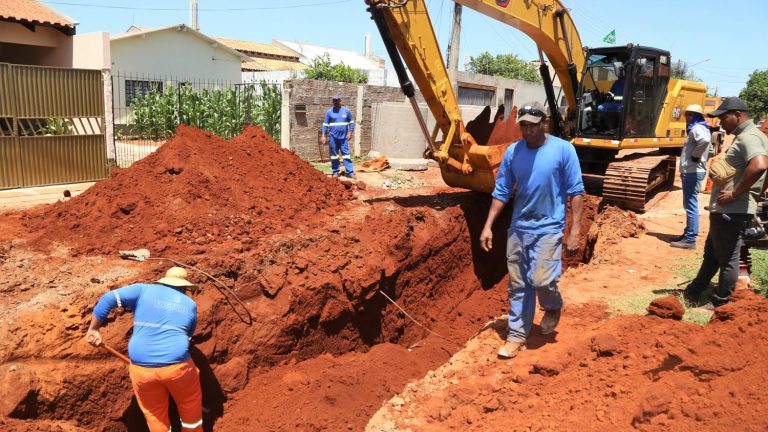 Desde o início da semana, trabalhadores e máquinas da empreiteira responsável pela obra estão no Residencial Oliveira (setores 1 e 2), onde está prevista a implantação de 2.300 metros de drenagem e a pavimentação de 16 ruas, trechos que somam uma extensão de 6,1 km. O serviço começou com abertura de valetas de 4 metros de profundidade para o assentamento de tubos de até 1,5 metro de diâmetro.
