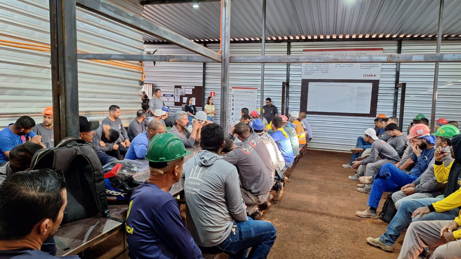 O encontro, realizado no refeitório do canteiro de obras, foi conduzido pelas psicólogas Letícia Braga Leite e Amanda Vilela de Almeida, que falaram com sensibilidade sobre temas como depressão, ansiedade, vícios em jogos eletrônicos e a importância de cuidar da própria saúde mental.