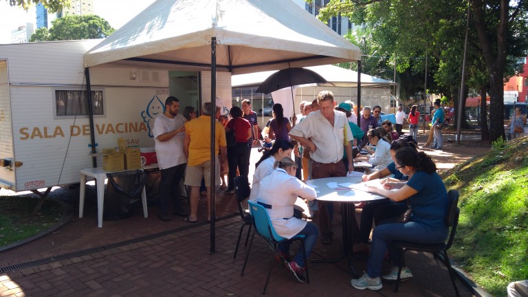 A Secretaria Municipal de Saúde (SESAU) montou esquema especial de vacinação contra a gripe durante o fim de semana e feriado e partir deste sábado, dia 28, a campanha ganha um reforço: o trailer da imunização que estará vacinando na Praça Ary Coelho. Os Centros Regionais de Saúde (CRS) Nova Bahia, Aero Rancho, Tiradentes e a Unidade Básica de Saúde (UBS) do Coophavilla II também irão funcionar neste fim de semana prolongado sem intervalo para almoço.
