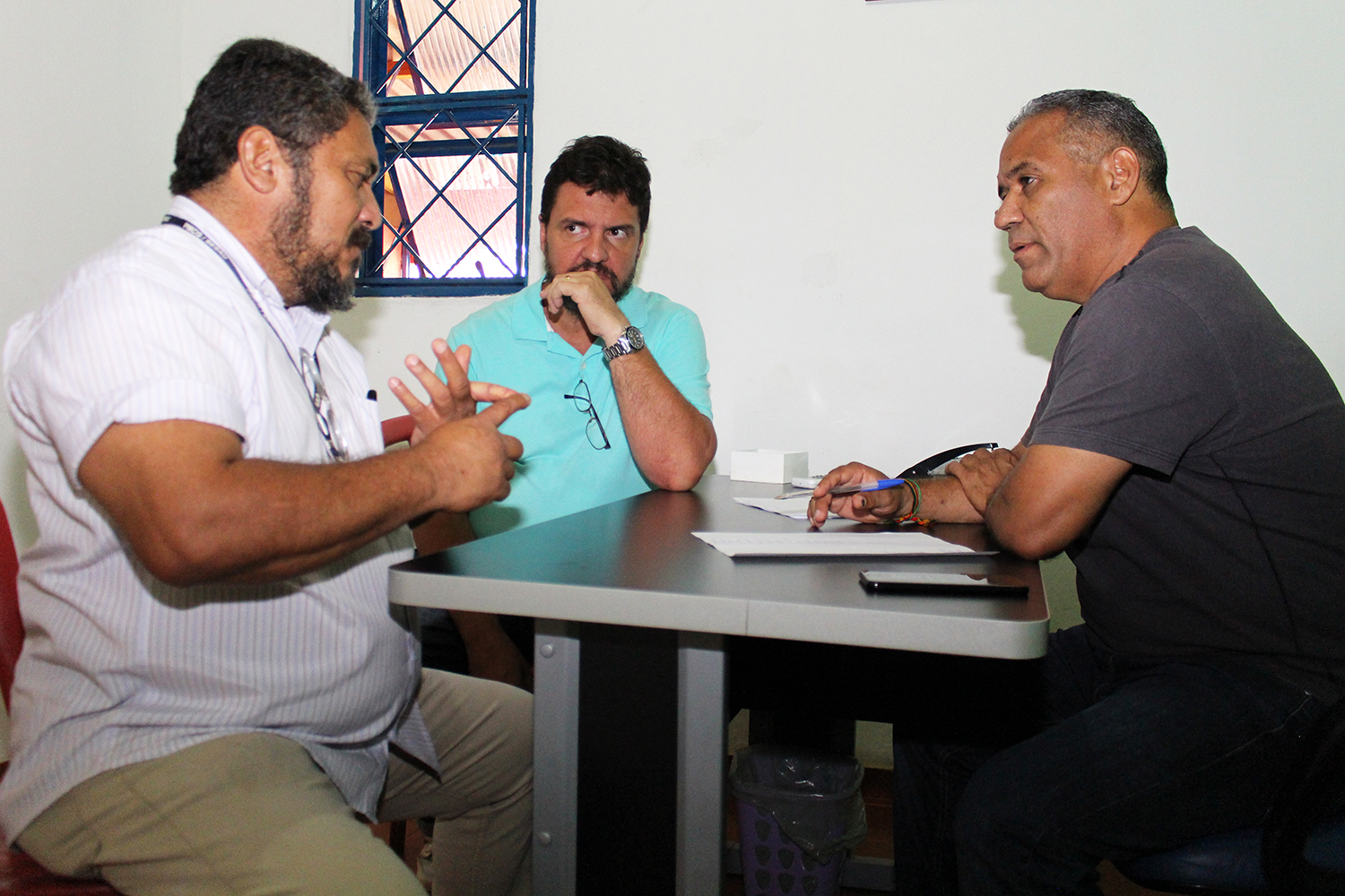 O coordenador de Resíduos e o técnico de Serviços de Resíduos da Secretaria Municipal de Saúde (Sesau), Marcus Vinicius Carvalhal e Diorander Cesar Ifran, estiveram reunidos nesta segunda-feira (5/2), no gabinete comunitário das Moreninhas, com o líder do prefeito na Câmara Municipal, vereador Chiquinho Telles (PSD).